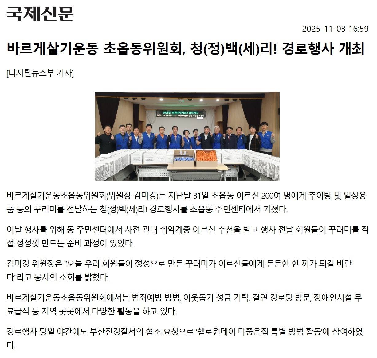 [초읍동] 바르게살기운동 초읍동위원회, 청(정)백(세)리! 경로행사 개최