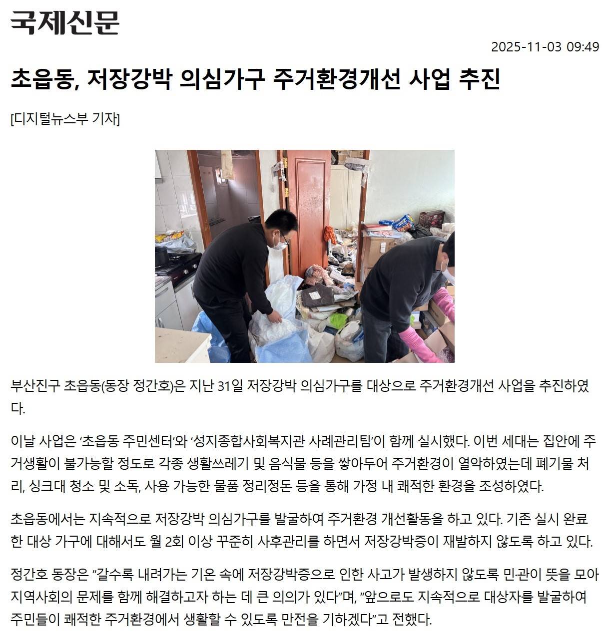 [초읍동] 저장강박 의심가구 주거환경개선 사업 추진