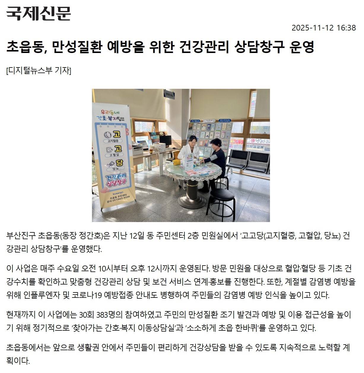 [초읍동] 만성질환 예방을 위한 건강관리 상담창구 운영