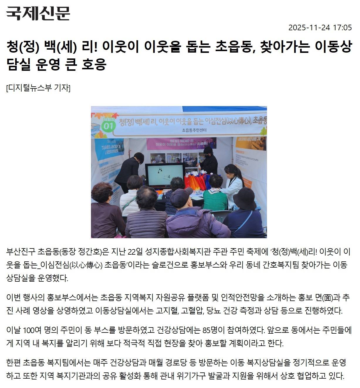 [초읍동] 청(정) 백(세) 리! 이웃이 이웃을 돕는 초읍동, 찾아가는 이동상담실 운영 큰 호응