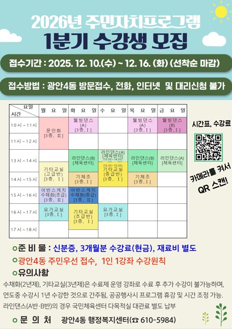 [광안4동] 2026년 주민자치회 프로그램 수강생 모집 안내