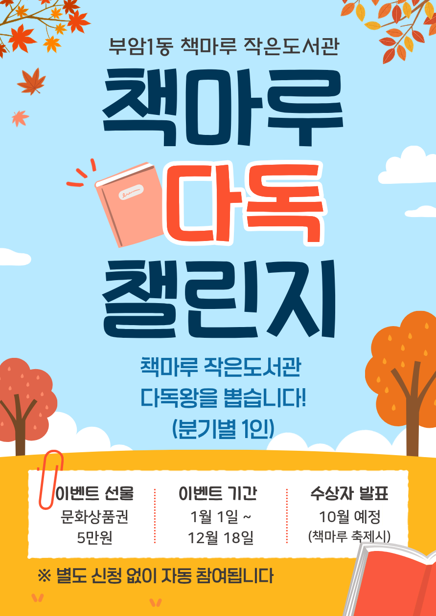 부암1동 책마루 작은도서관에서 책마루 다독 챌린지를 진행합니다!