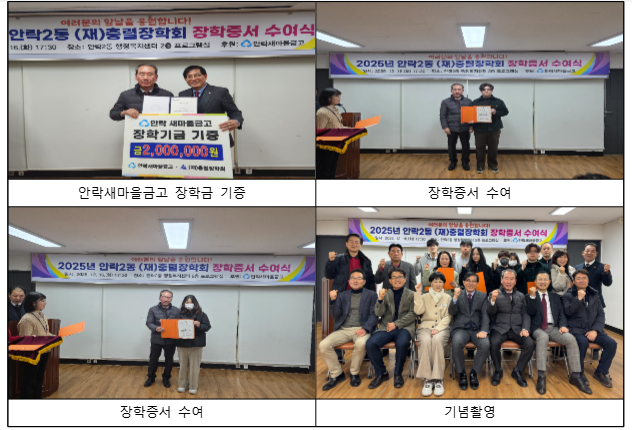 - 안락새마을금고(이사장 백남도) 장학기금 200만원 기증