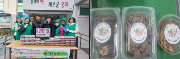 - 돌봄이 필요한 취약계층 10세대에 반찬 3종 세트를 월 2회 전달