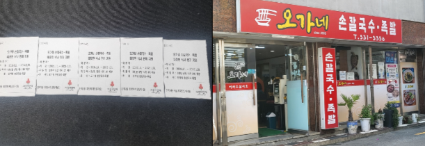 2. 기 탁 자: 오가네 손칼국수·족발 (대표 한영숙 ☎ 531-3356)
