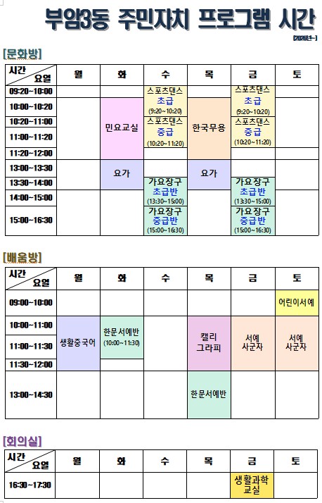 [부암3동] 2026년 주민자치 운영 프로그램 시간표