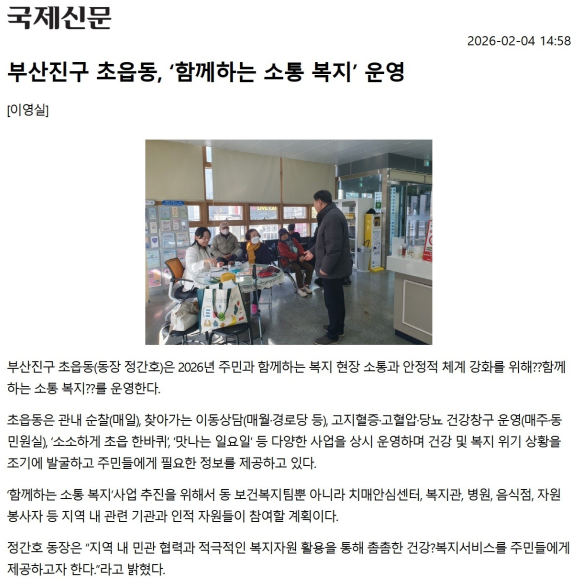 [초읍동] 부산진구 초읍동, 함께하는 소통 복지 운영