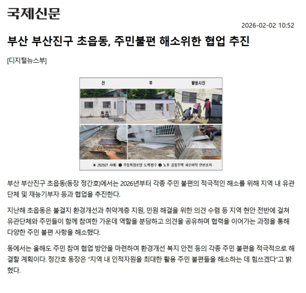 [초읍동] 부산진구 초읍동, 생활 불편 처리 주민 협업 추진