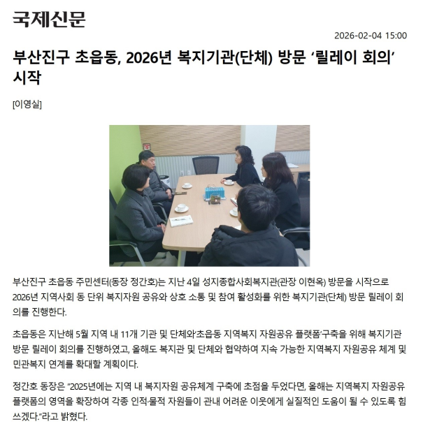[초읍동] 부산진구 초읍동, 방문 릴레이 회의 시작