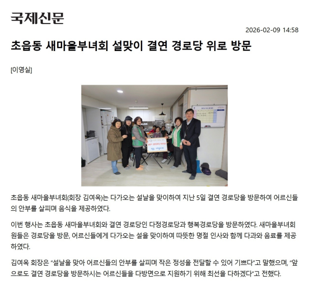[초읍동] 초읍동 새마을부녀회 설맞이 결연 경로당 위로 방문