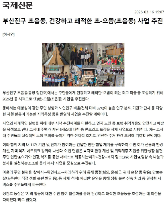 [초읍동] 부산진구 초읍동, 건강하고 쾌적한 초-으뜸(초읍동) 사업 추진
