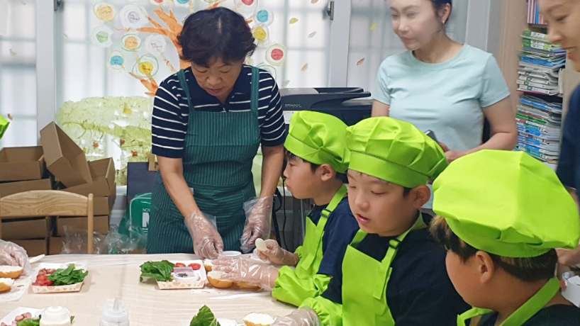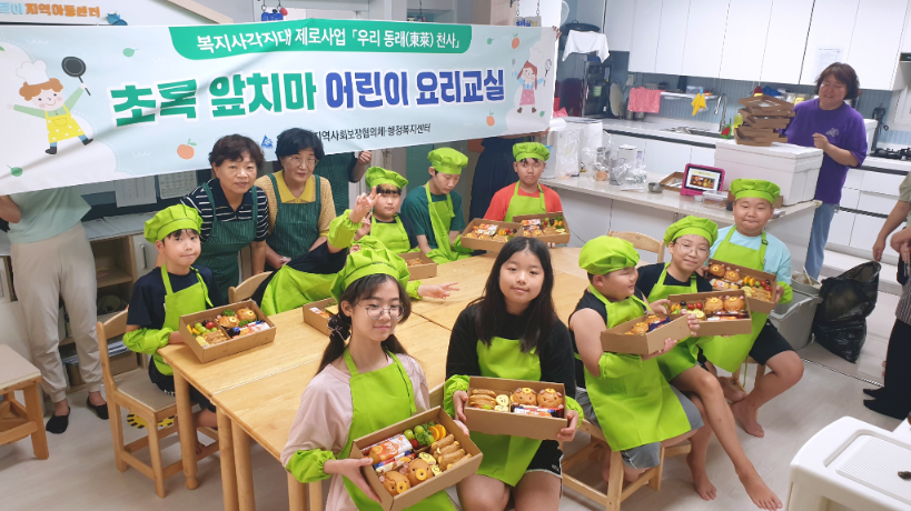 관내 저소득층 아동의 건강한 식습관 형성을 위하여 '우리동래 천사를 찾습니다!' 후원금으로 식습관 교육 및 요리활동을 지원하는「초록 앞치마」어린이 요리교실을 운영하였습니다.