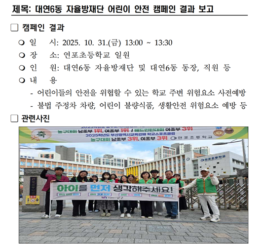 대연6동자율방재단 어린이 안전 캠페인