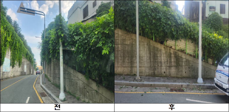 1차 미션으로 장기 생활민원이었던 초읍중학교 통학로 가로등 넝쿨을 지난달