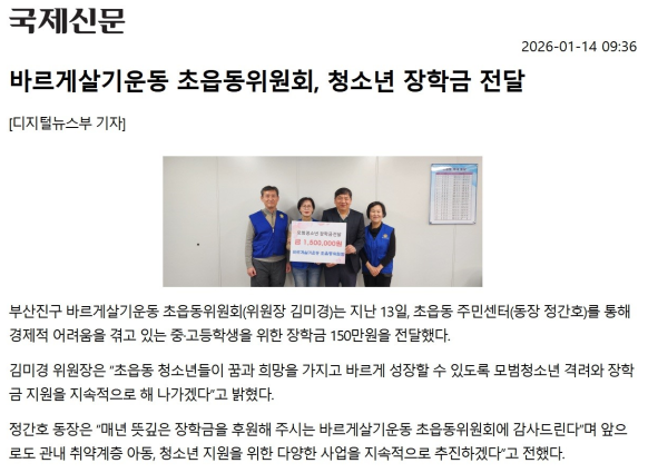 [초읍동]바르게살기운동 초읍동위원회, 청소년 장학금 전달