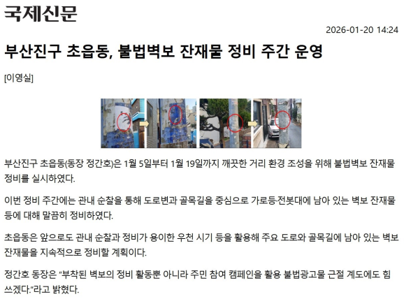 [초읍동] 부산진구 초읍동, 불법벽보 잔재물 정비 주간 운영