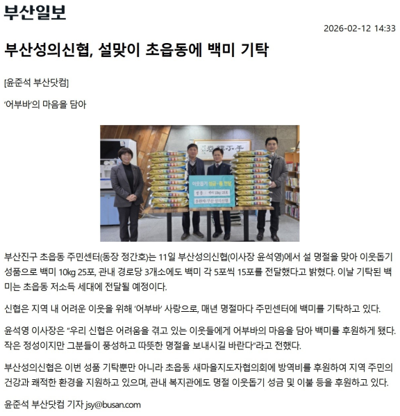 [초읍동] 부산성의신협 이웃돕기 성품 전달