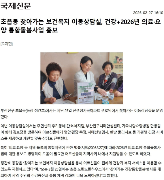 [초읍동] 초읍동 찾아가는 보건복지 이동상담실 운영