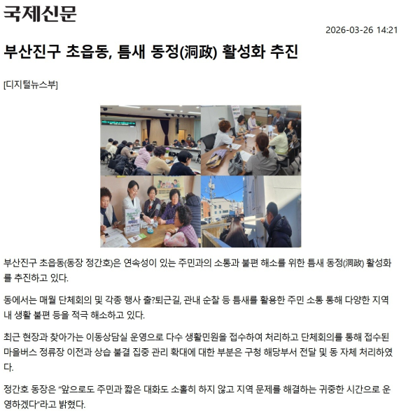 [초읍동] 부산진구 초읍동, 틈새 동정 활성화 추진