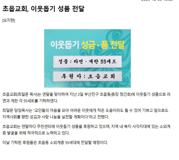 [초읍동] 초읍교회 이웃돕기 성품 전달