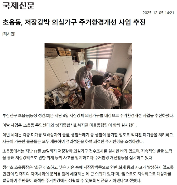 [초읍동] 초읍동 저장강박 의심가구 주거환경개선 실시