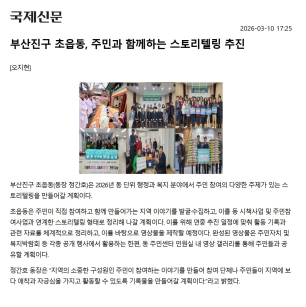 [초읍동] 부산진구 초읍동, 주민과 함께하는 스토리텔링 추진