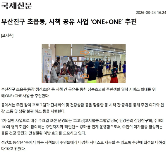 [초읍동] 부산진구 초읍동, 시책 공유 사업 "one+one"추진