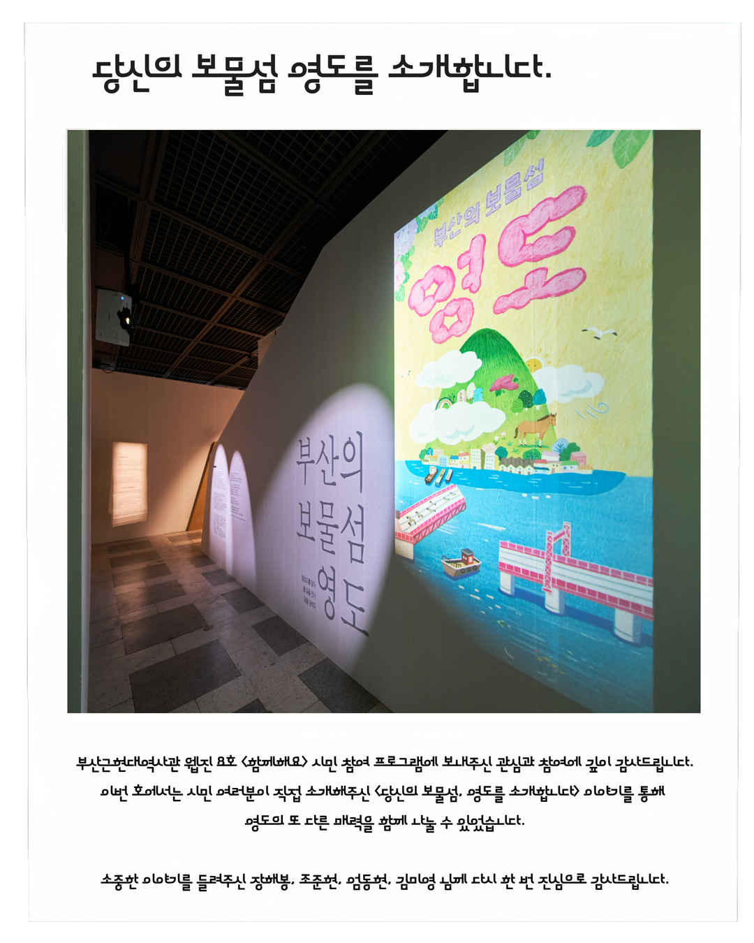 선정되신 분들께는 보내주신 소중한 정보를 바탕으로 〈부산의 보물섬, 영도〉 전시 굿즈 패키지를
