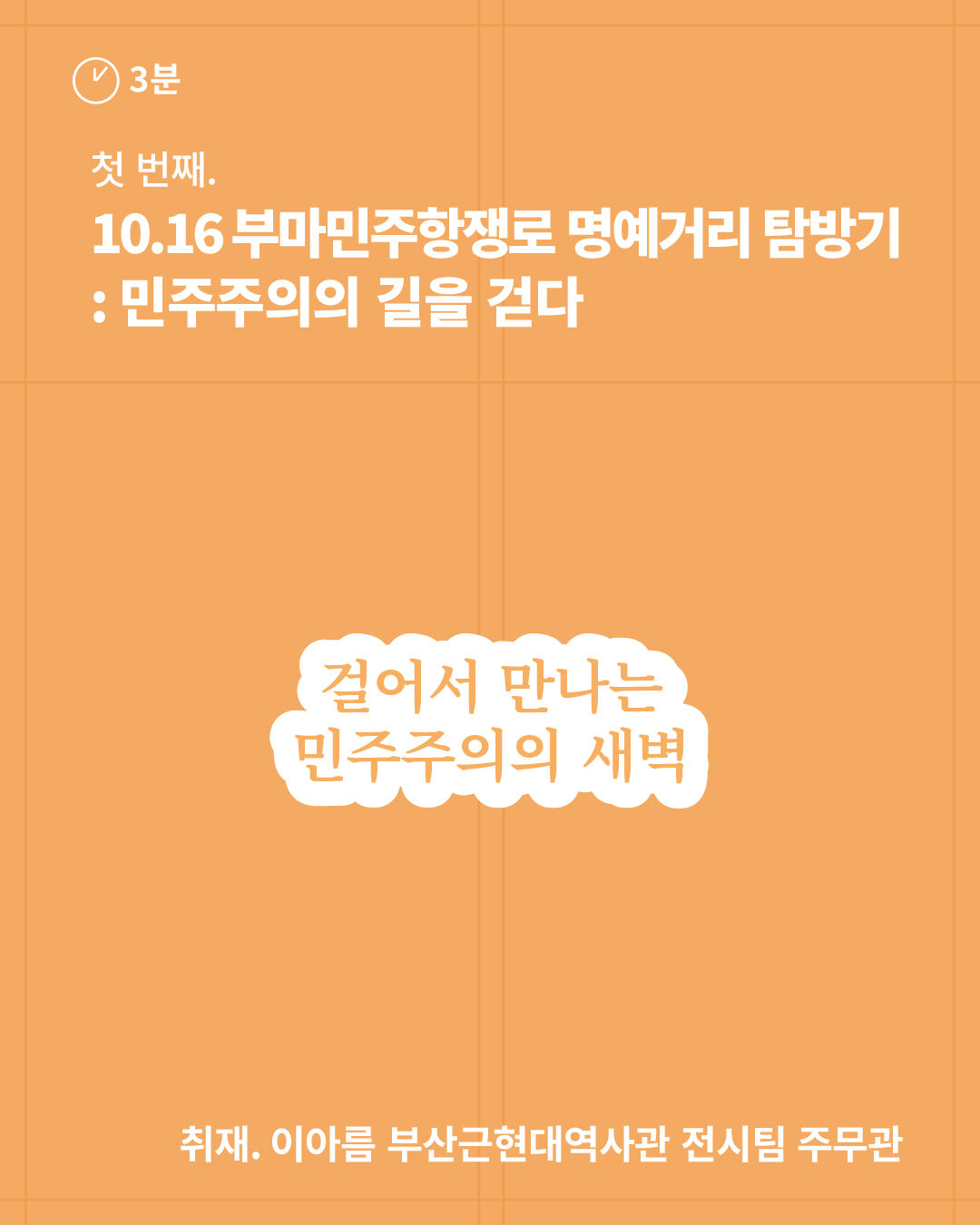 공간 탐방의 여정을 깊고 풍성하게 만들어주신 금정구청 관계자 여러분의 소중한 자료와 따뜻한 설명에 감사드리며, 부마민주항쟁의 더 자세한 기록과 이야기는 부산근현대역사관 본관 4층 상설전시실