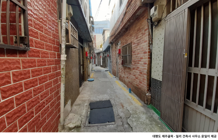 매립지가 많은 대평동에는 출신 지역별로 특색 있는 마을이 형성되었습니다. ‘이북동네’(대평남로 51번길 주변)는 한국전쟁 당시 함경도 피란민이 모여 살던 곳으로, 미로 같은 골목길에 한 지붕 아래 여러 방이 붙어 있는 구호주택 형태(단칸방, 공동 화장실)가 남아 있습니다. 인근의 ‘제주골목’(대평로 41번길 주변)은 1960년대 제주 해녀들이 정착한 곳으로, 폭 1m 내외의 좁고 복잡한 골목길에 집들이 밀집해 있어 마을 주민조차 위치를 정확히 설명하기 어려울 정도입니다.