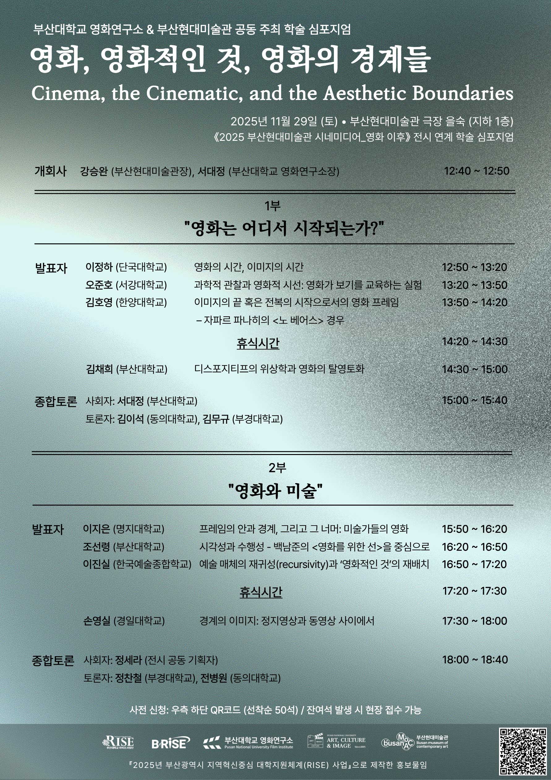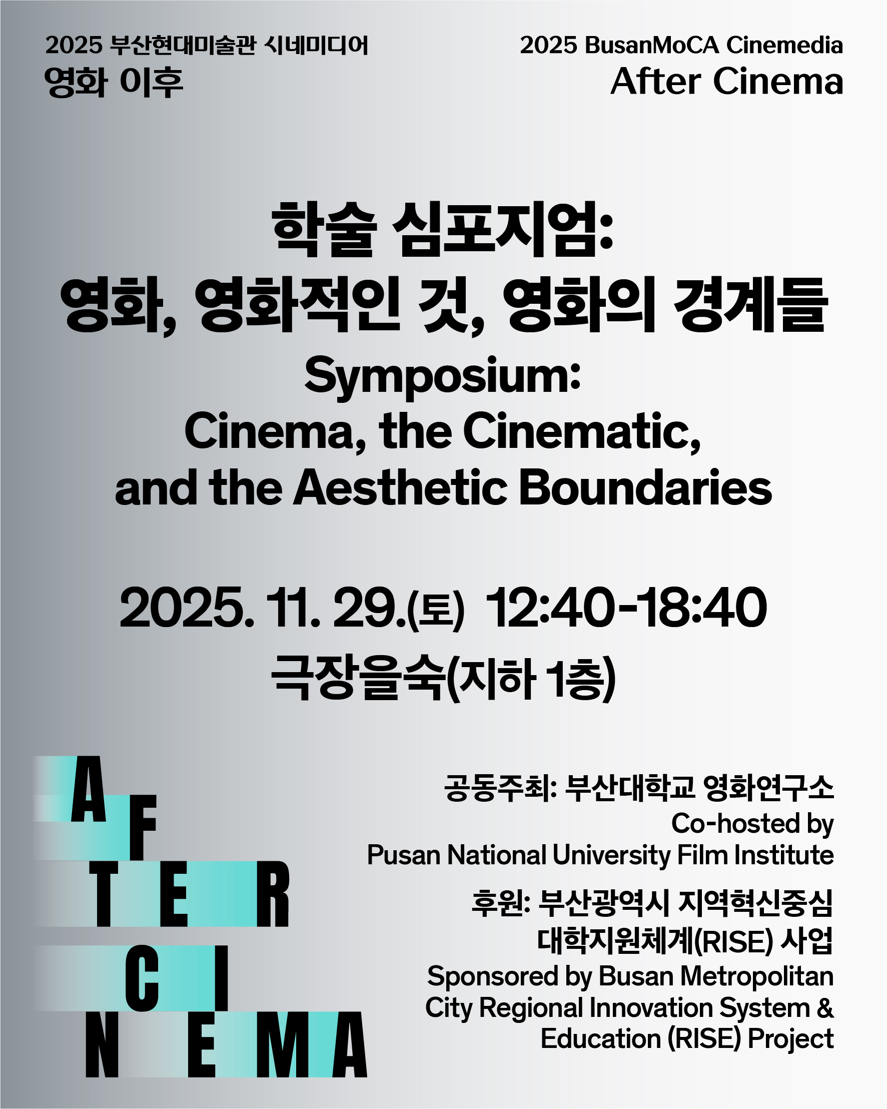 진행/예정🟢《2025 부산현대미술관 시네미디어_영화 이후》 전시 연계 〈학술 심포지엄 - 영화, 영화적인 것, 영화의 경계들〉