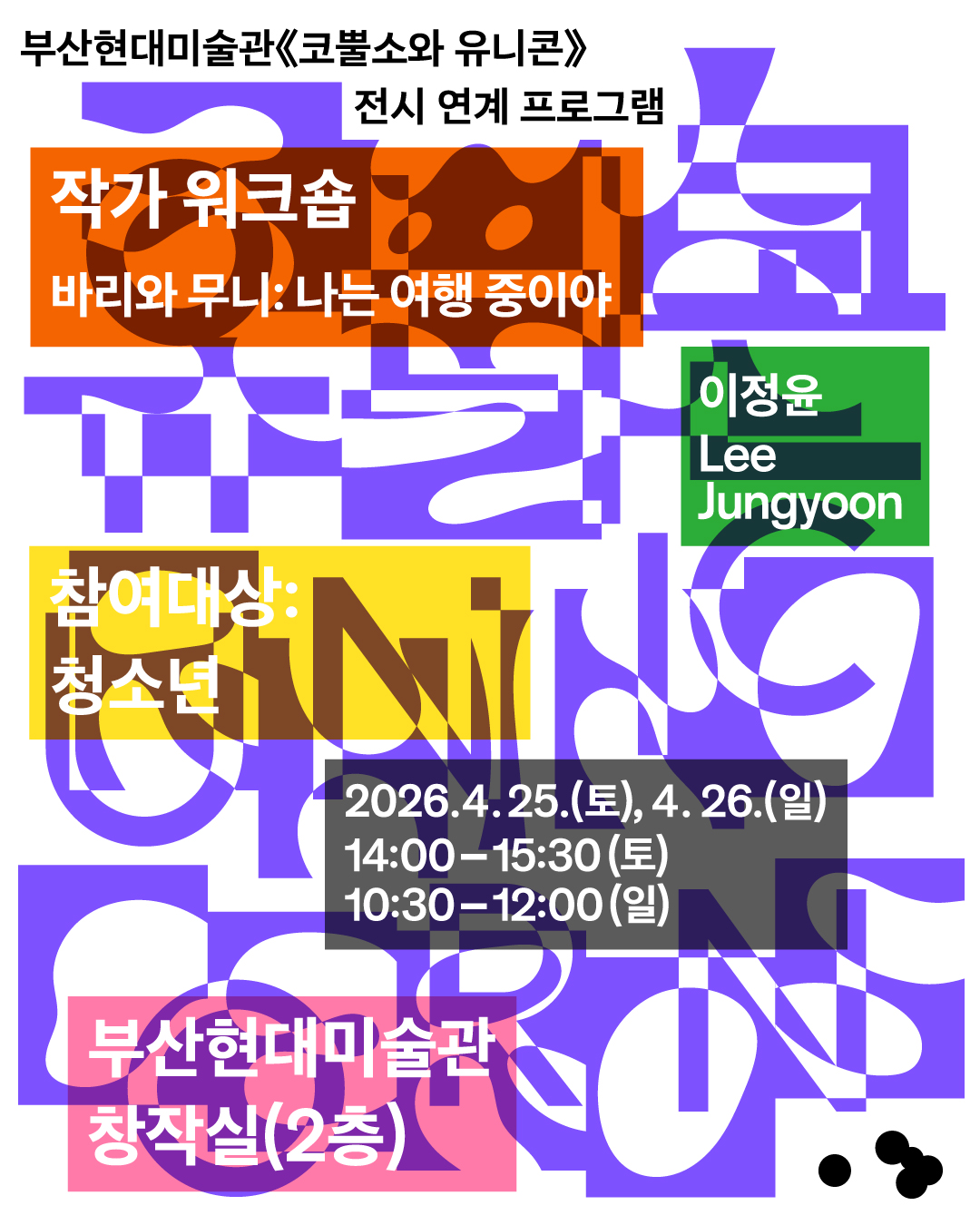 부산현대미술관에서는 《코뿔소와 유니콘》 전시에 참여한 작가 이정윤과 함께하는 청소년 워크숍을 진행합니다.