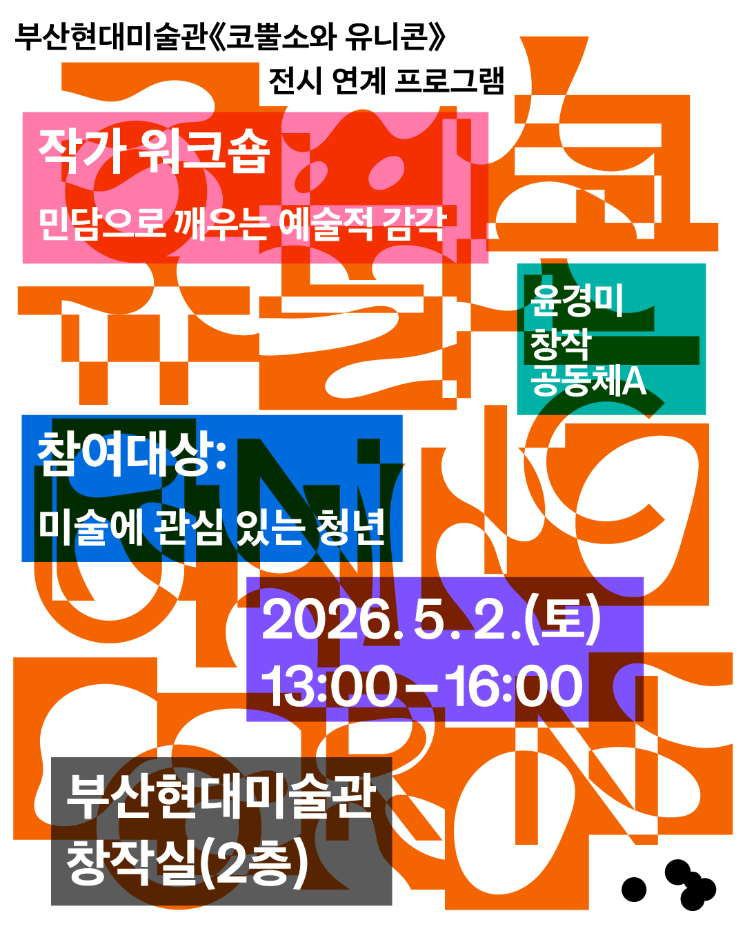 부산현대미술관에서는 《코뿔소와 유니콘》 전시에 참여한 작가 윤경미와 함께하는 워크숍을 진행합니다.