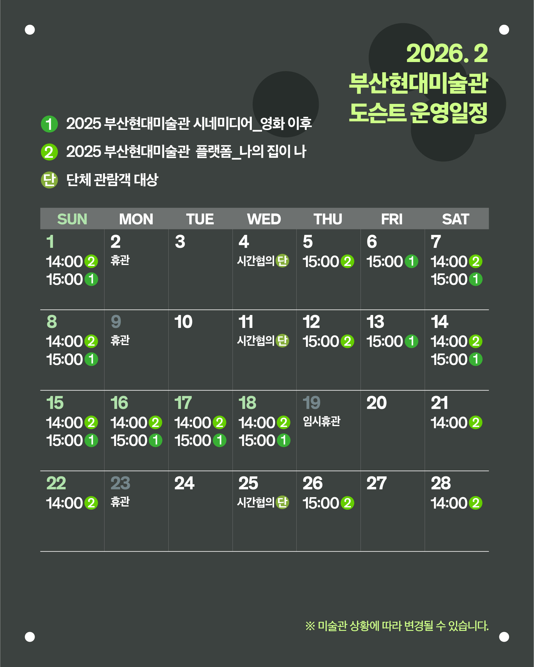 진행/예정🟢2026. 2월 전시 해설 도슨트 운영일정(2. 1. - 2. 28.)