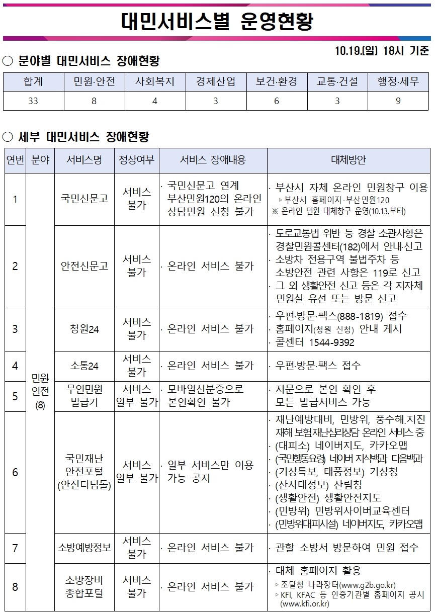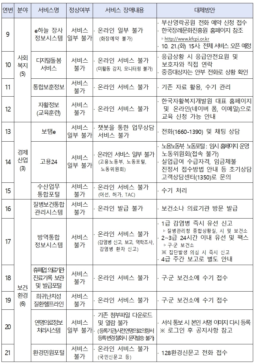 서비스 복구 현황 및 공식 안내는 각 부처와 기관의 공식 홈페이지 공지사항에서만 확인해 주시기 바랍니다.