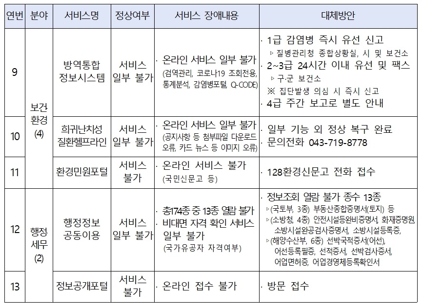 서비스 복구 현황 및 공식 안내는 각 부처와 기관의 공식 홈페이지 공지사항에서만 확인해 주시기 바랍니다.
