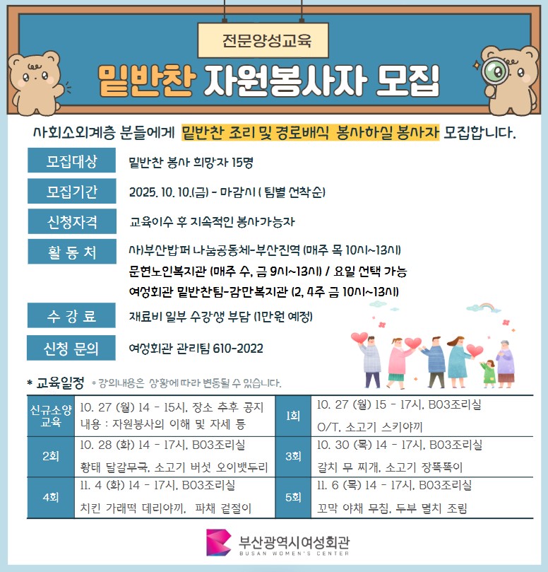 전문양성교육(밑반찬&경로배식) 자원봉사자 모집 안내
