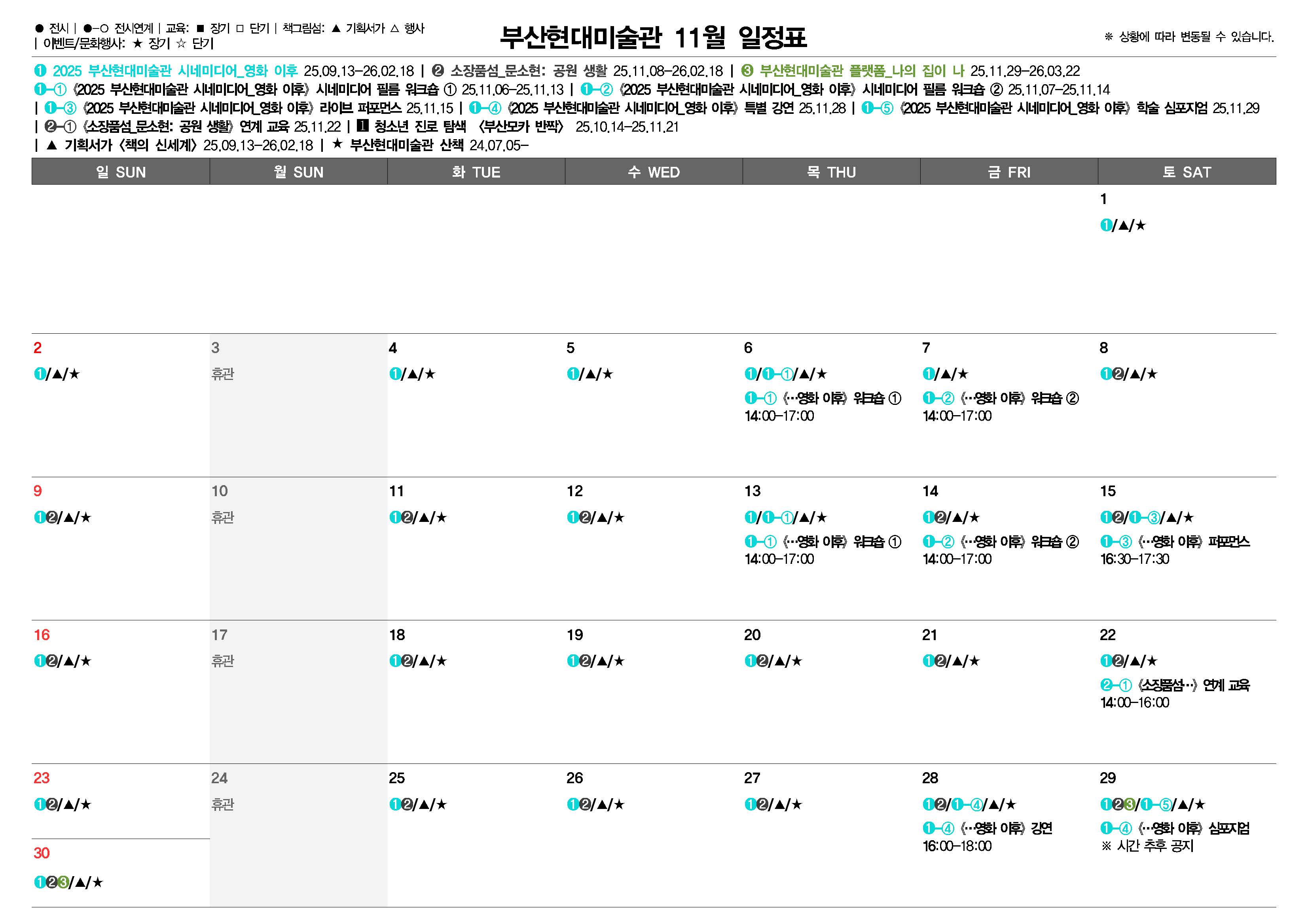 부산현대미술관 월별 일정표(2025.11)