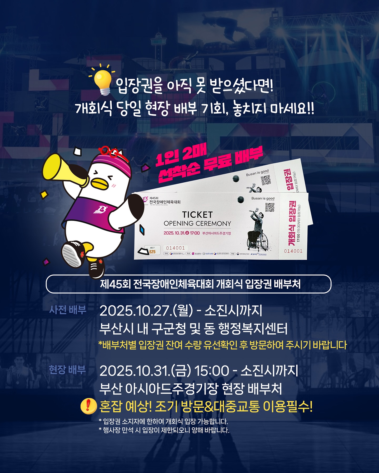 *배부처별 입장권 잔여 수량 유석확인 후 방문 바랍니다.