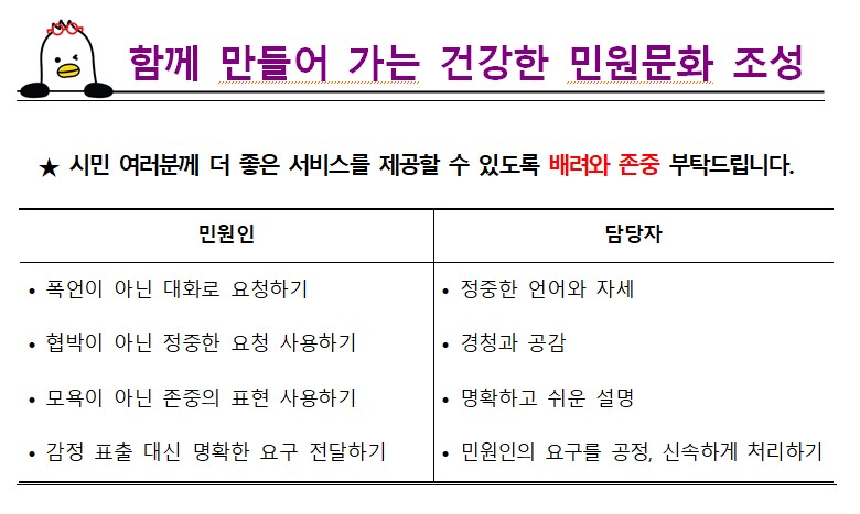 함께 만들어 가는 건강한 민원문화 조성