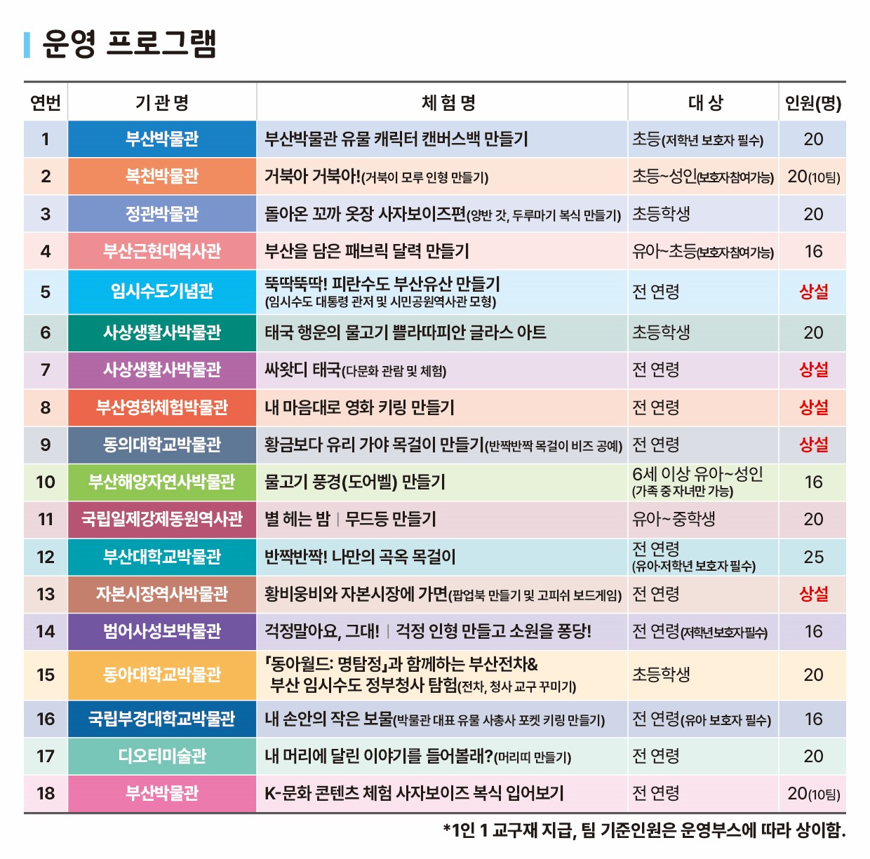 ○ 행사내용 : 부산광역시박물관협회 소속 16개 기관의 특색있는 체험교육 18종