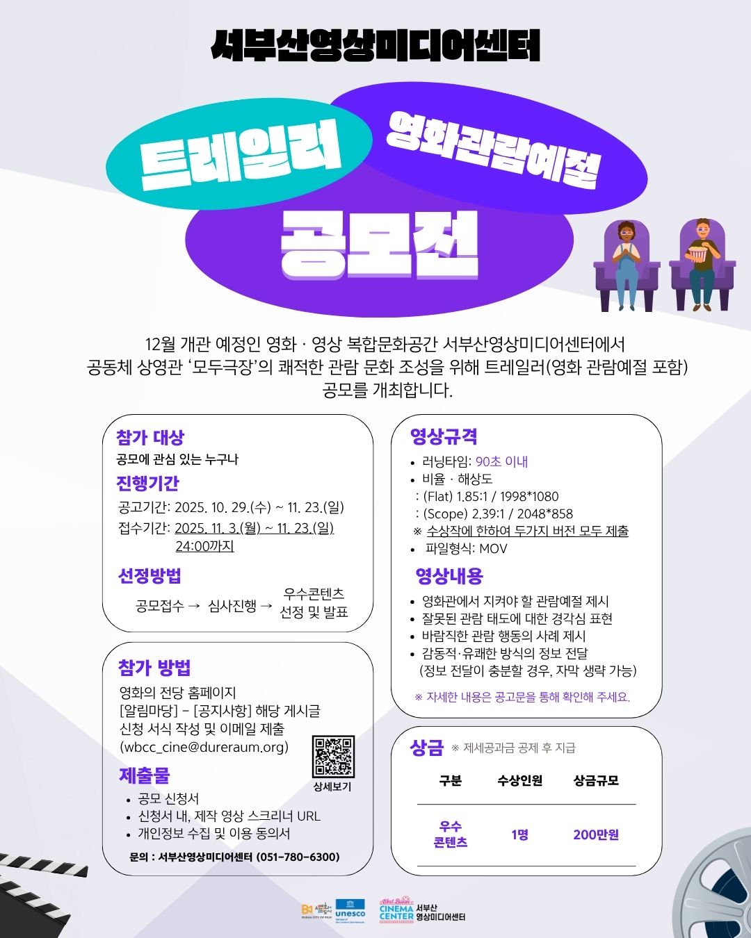 - 공 모 명: 2025년 서부산영상미디어센터 트레일러 공모