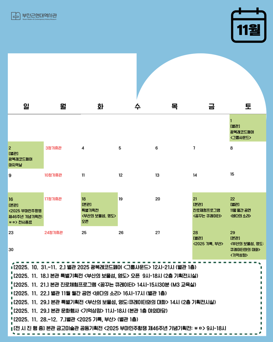 🏛️ 2025년 부산근현대역사관 11월 운영안내