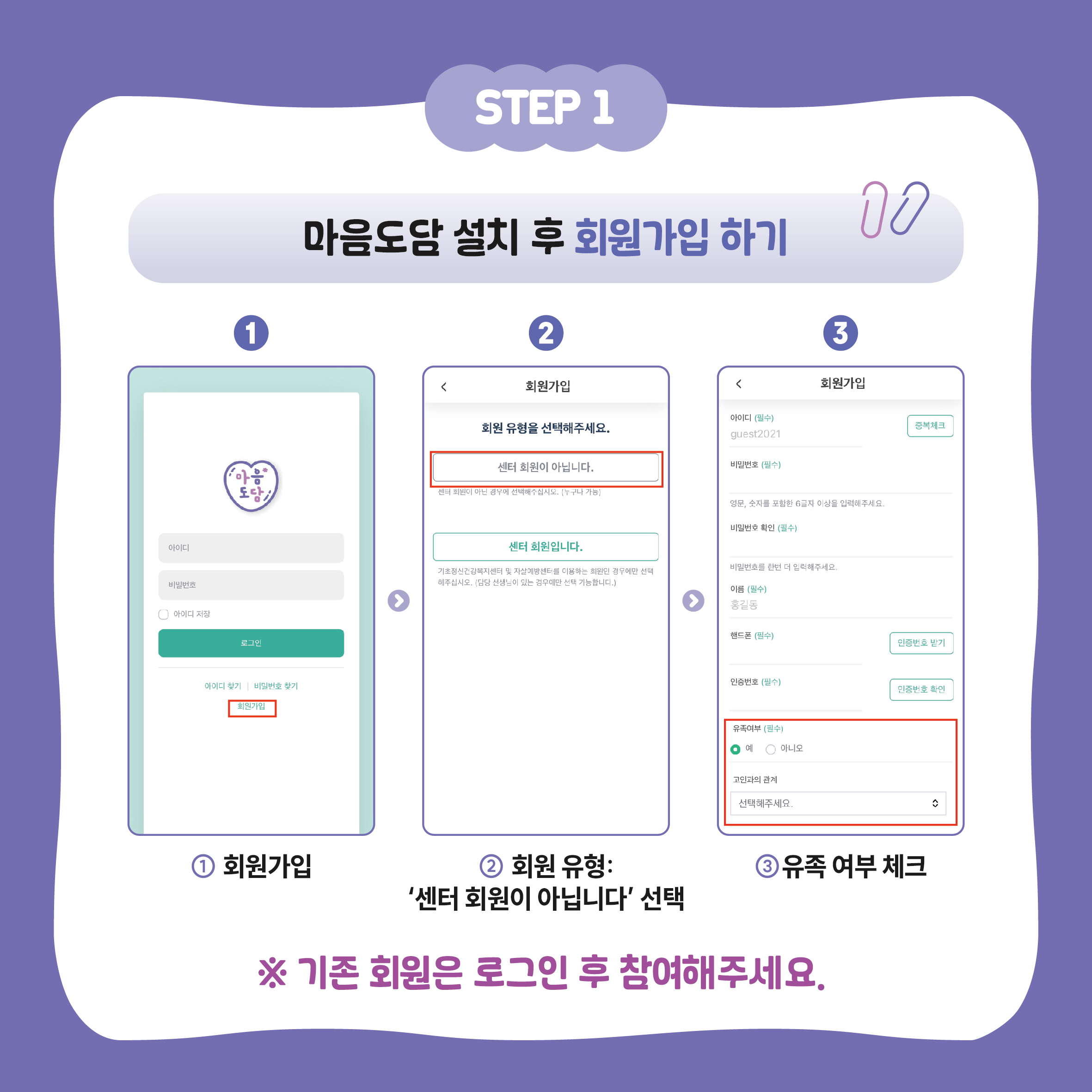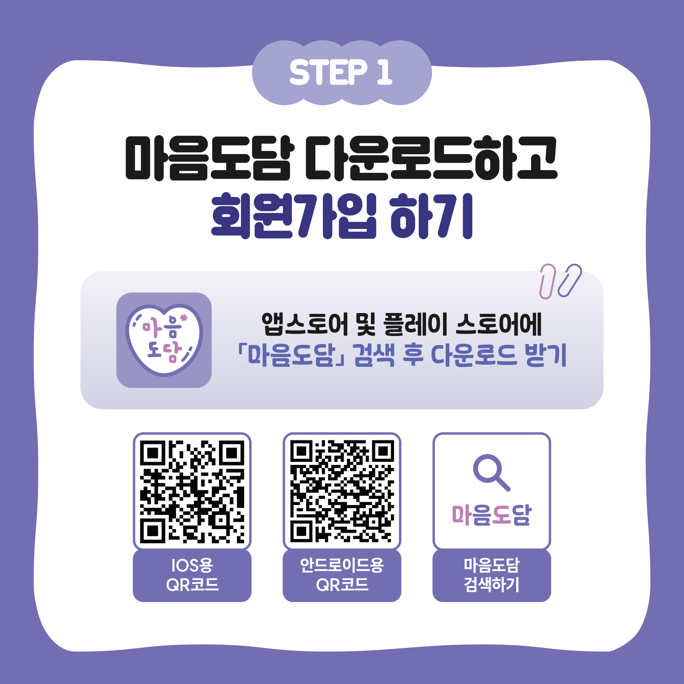 ① 자살유족 애플리케이션 「마음도담」 다운로드 및 회원가입