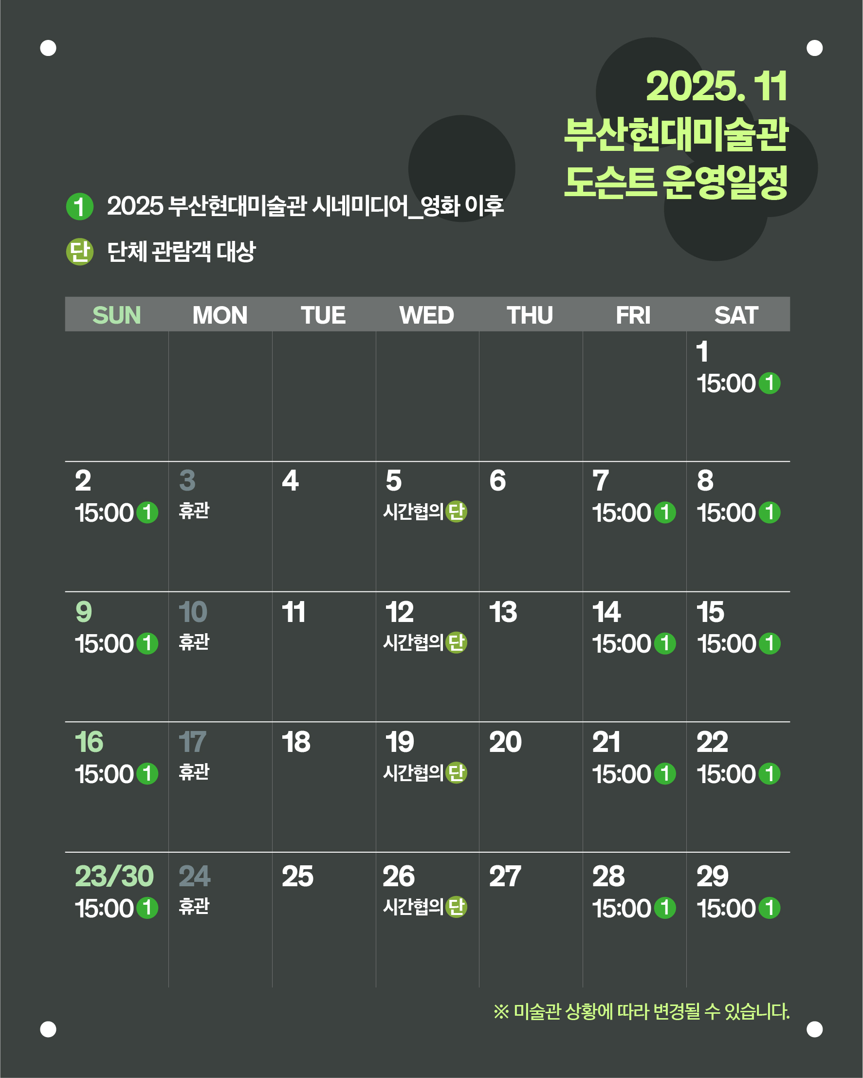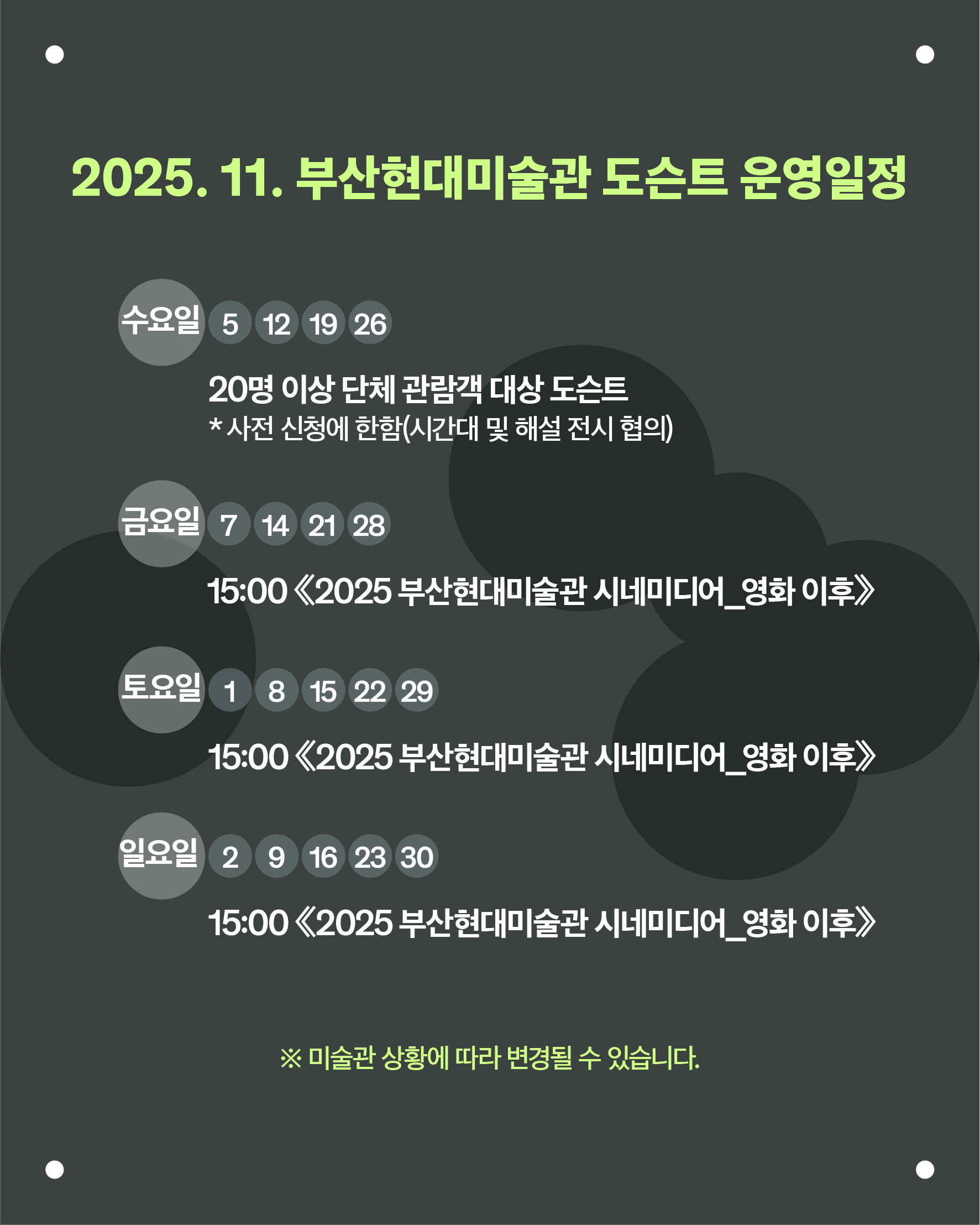 부산현대미술관 전시 해설 도슨트 운영일정 재안내(2025. 11. 18. - 11. 30.)