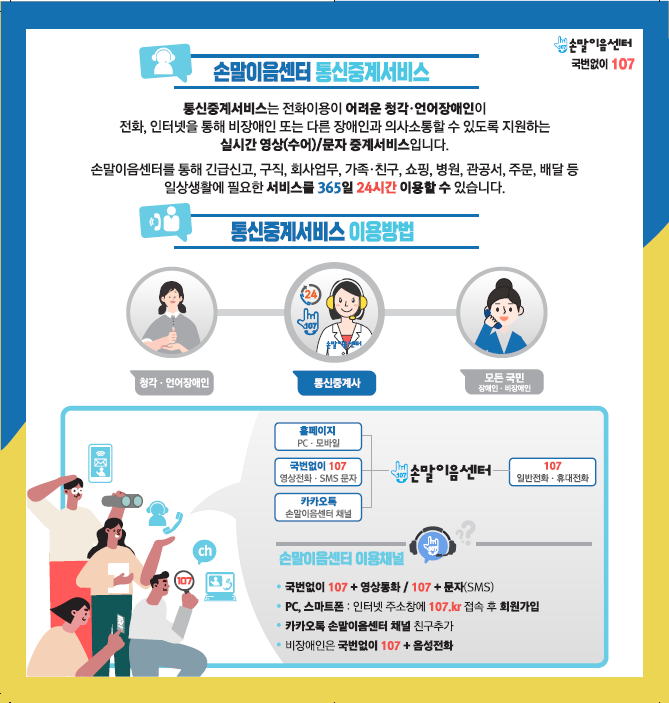 국번없이 107 + 영상통화 / 107 + 문자(SMS)