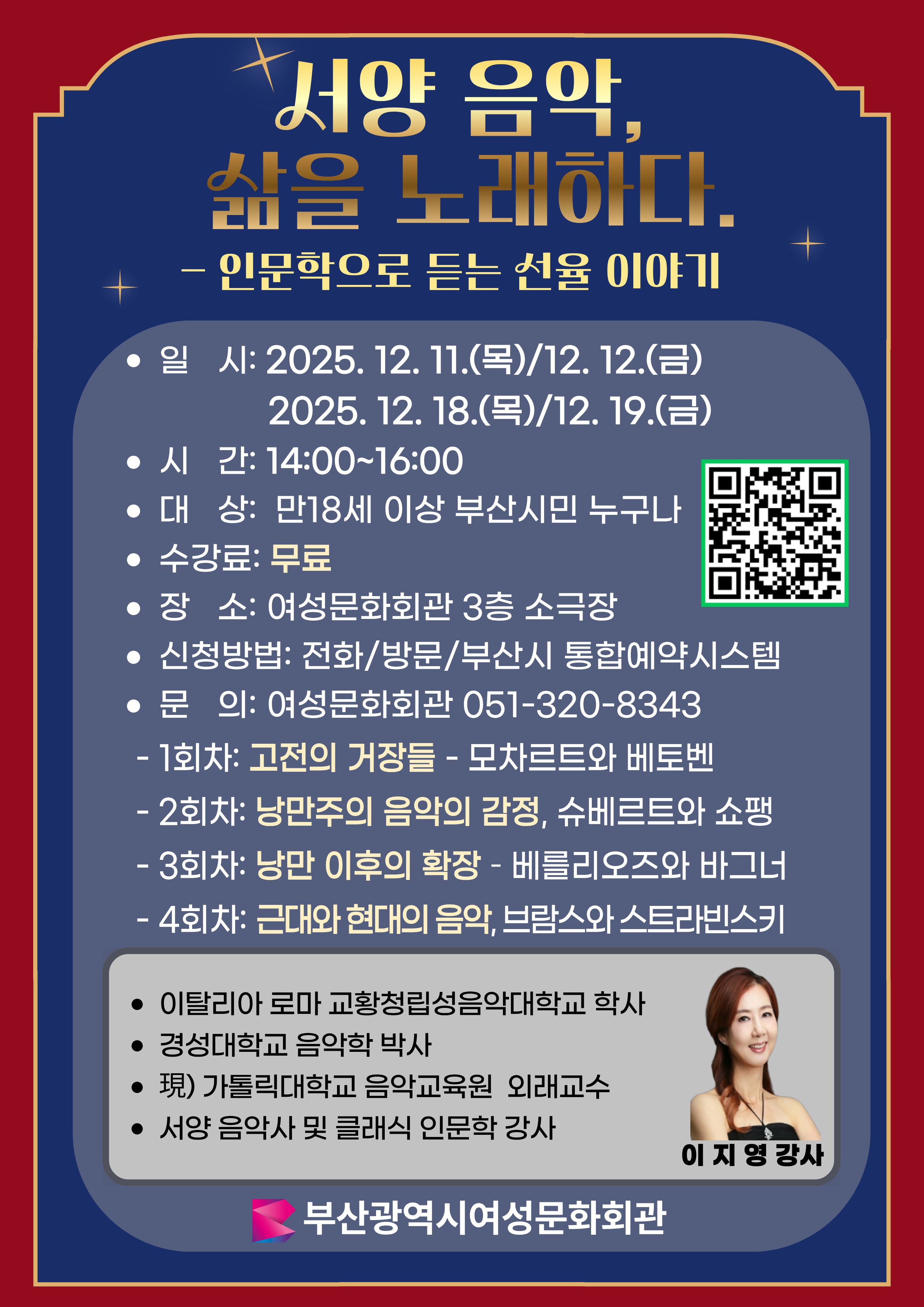 교양있는 부산 시민들을 위한 클래식 인문학 특강을 개최합니다.