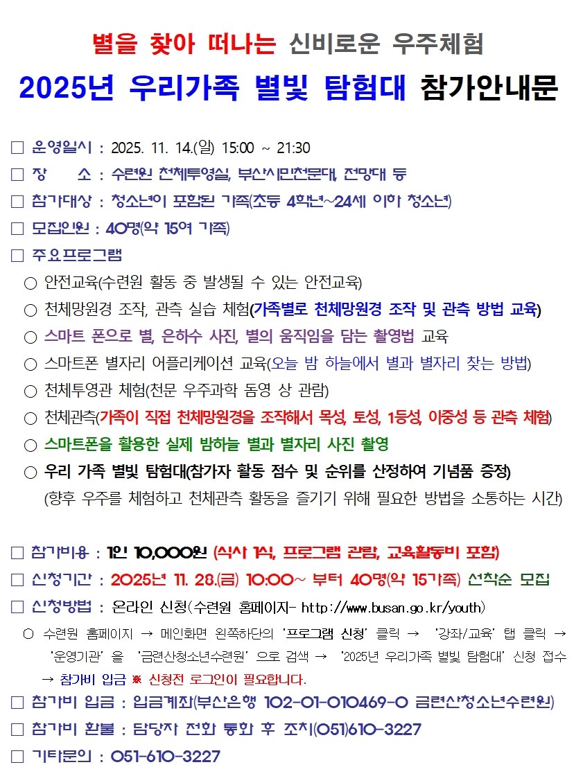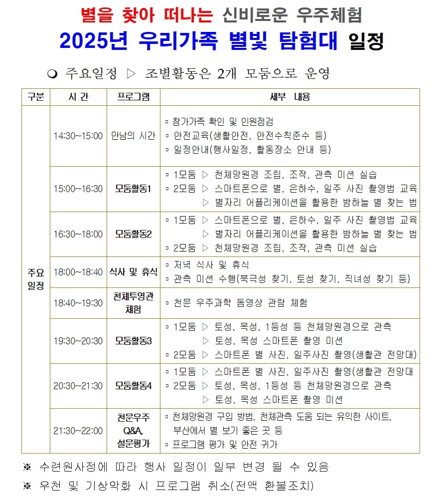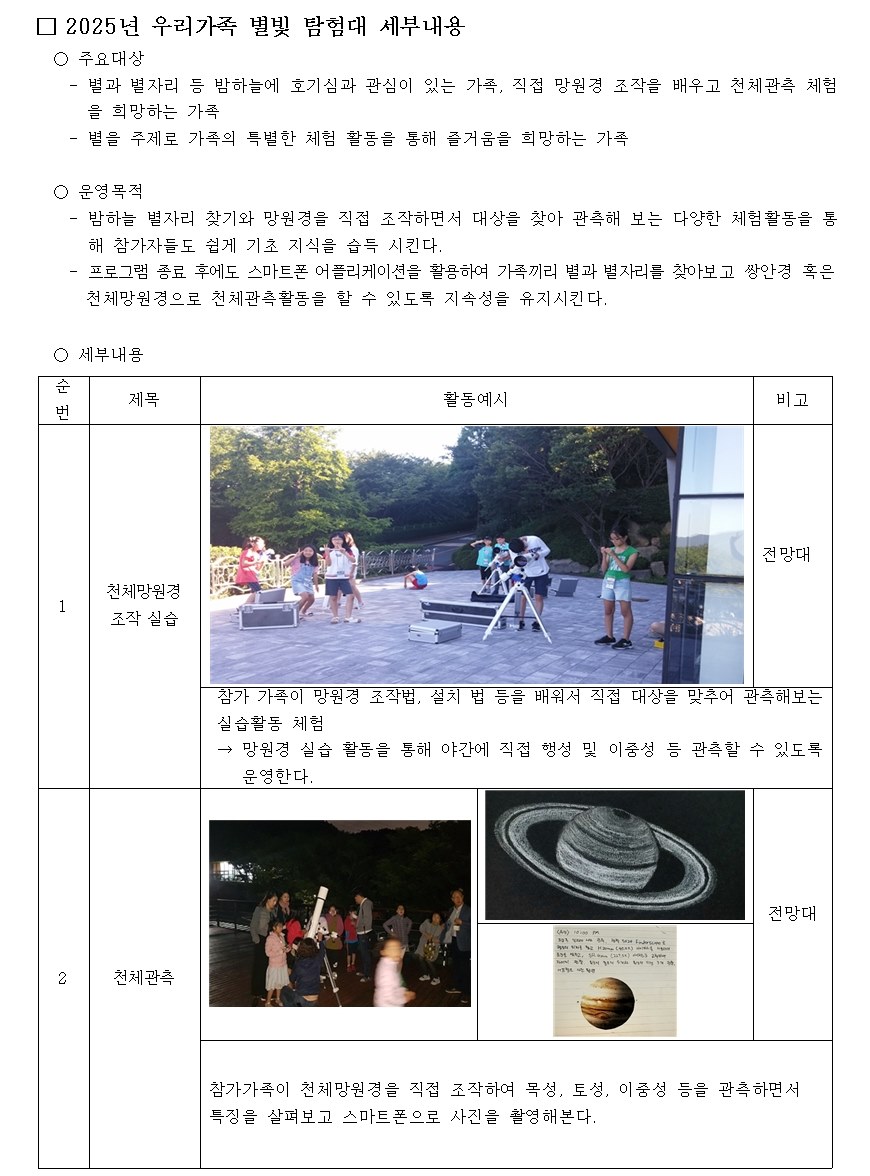 청소년 가족이 함께 즐기는 천문우주 캠프 프로그램