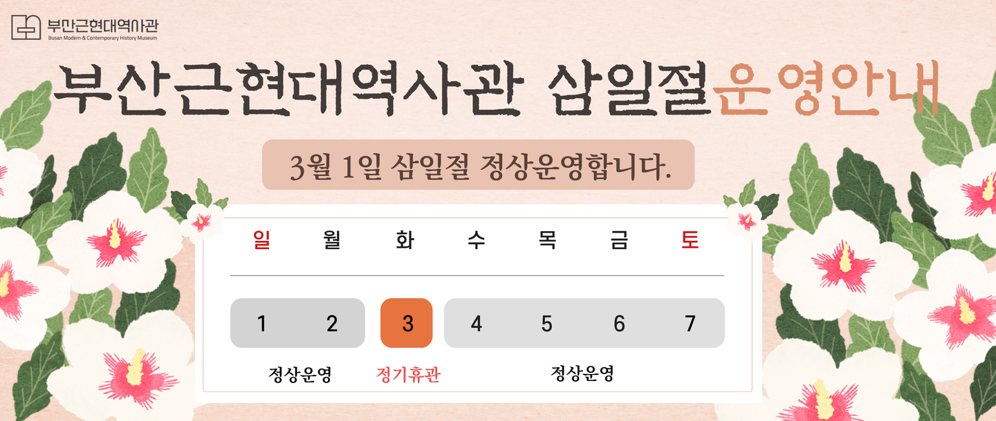 제107주년 삼일절을 맞아 부산근현대역사관은 정상 운영합니다.