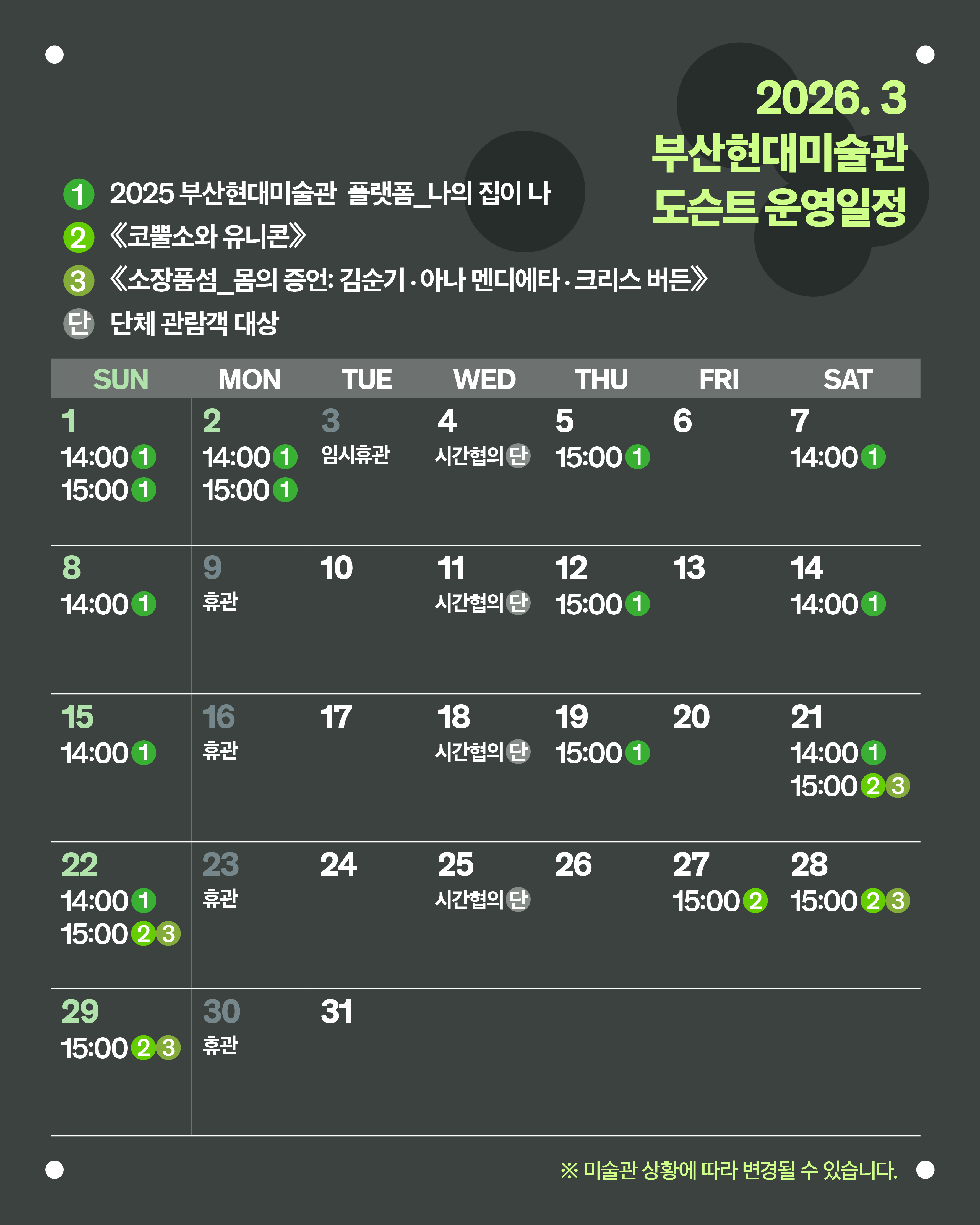 ※ 미술관 전시 상황에 따라 도슨트 월별 일정이 달라질 수 있습니다.